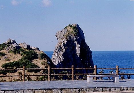 右の写真が実在する猿岩です。この岩は壱岐郡郷ノ浦町の北西にあります。これ以外にも,「奈緒子」には,壱岐島に実在する風景がたくさん使われています。